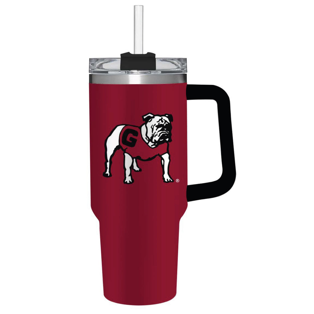 This 40oz Stainless Steel Canyon Cup is perfect for University of Georgia fans who want to showcase their school spirit. Featuring an alternate logo, this cup comes with a convenient straw and handle for easy carrying.