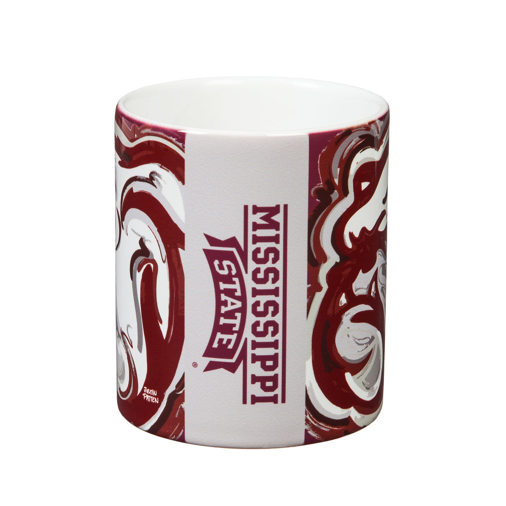 This Mississippi State University ceramic 11 oz. white mug features beautiful exclusive artwork by painter Justin Patten. Comfortable C-shaped handle. Superior quality. Top-rack residential dishwasher and microwave safe.