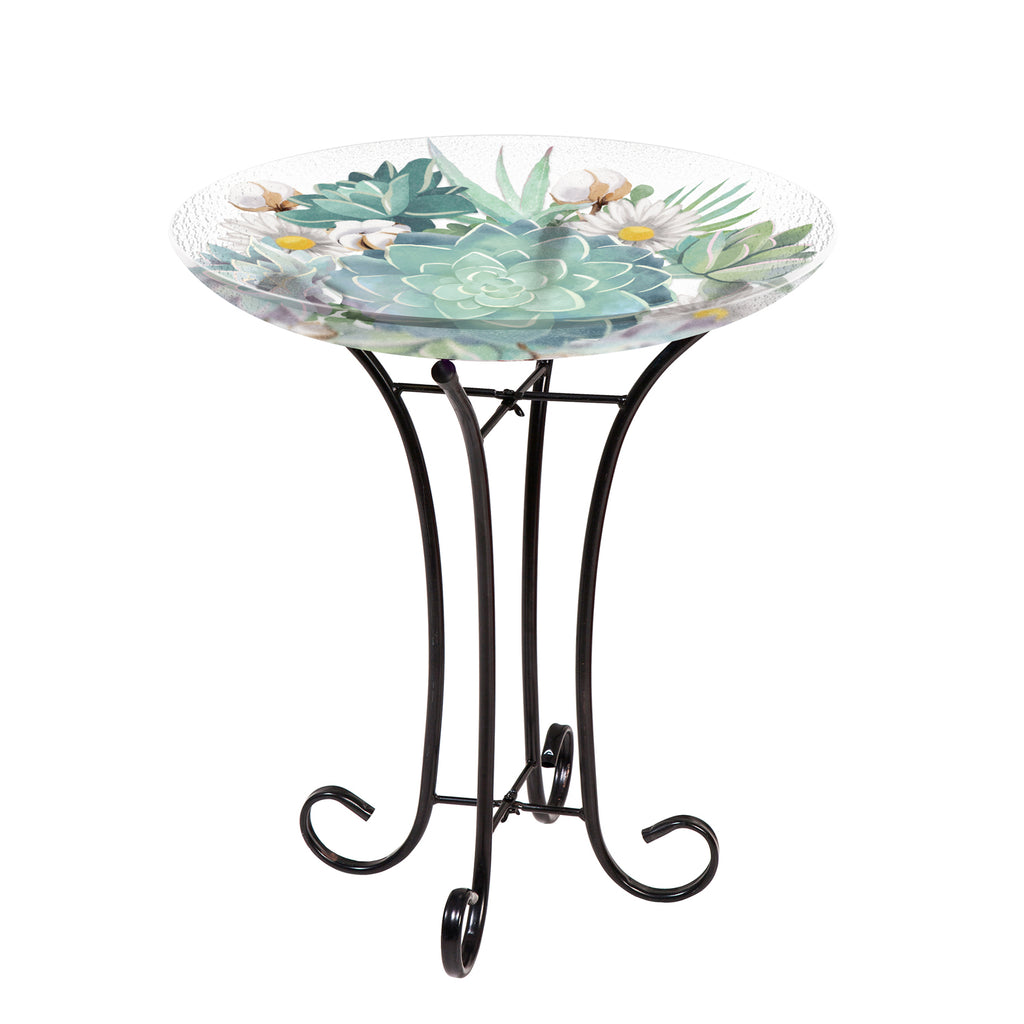 16" Glass Bird Bath w/Stand, Harvest Succulents,2gb1210