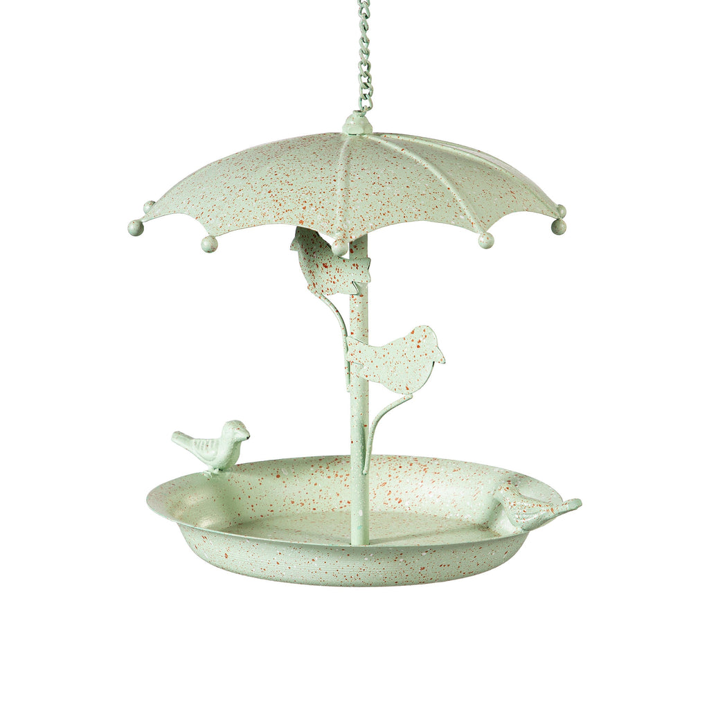 Enhance your garden with this charming metal hanging bird feeder, designed like an umbrella for a whimsical touch. Perfect for attracting a variety of birds during the spring season.