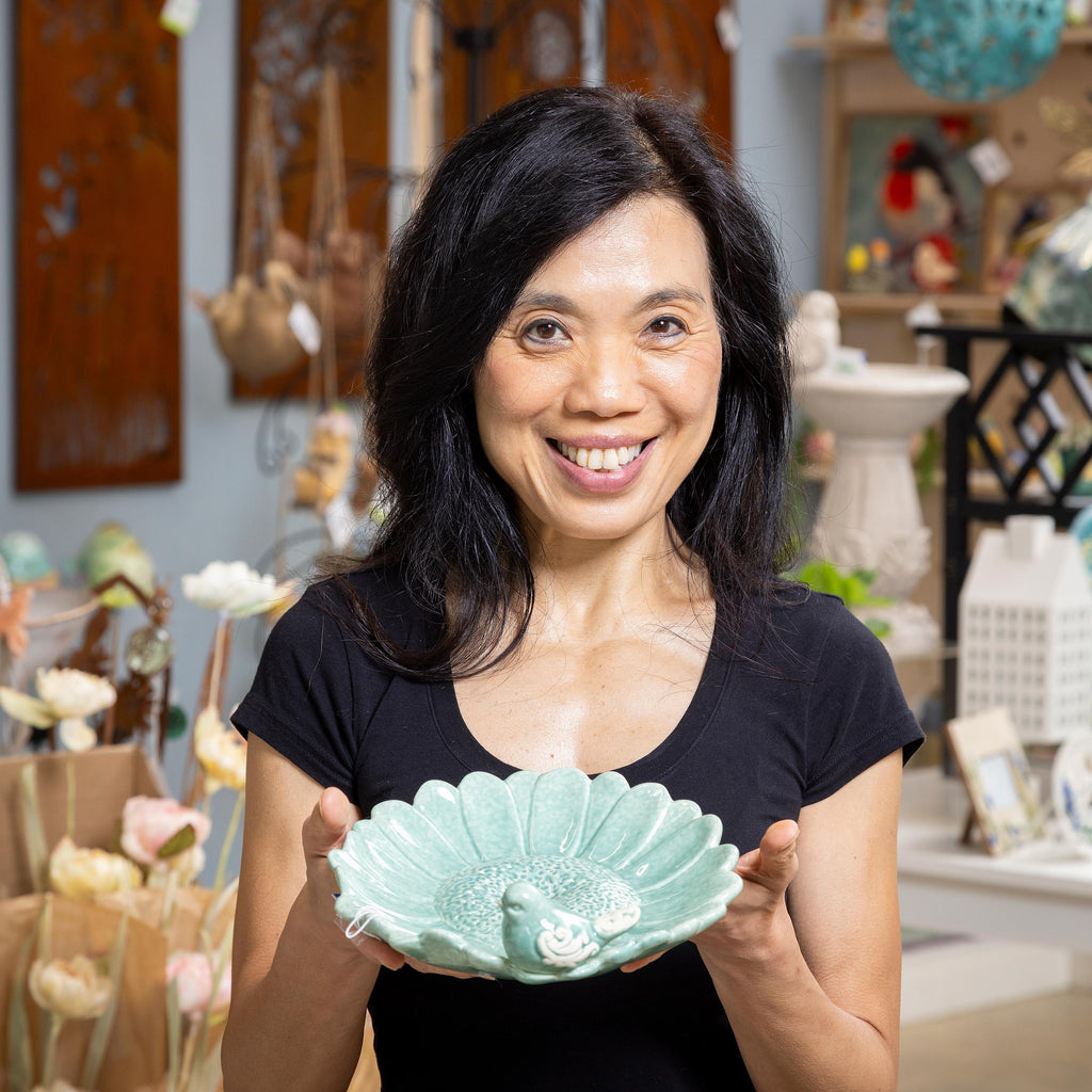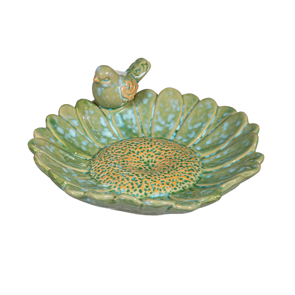 What She Shed Bird Feeder, Ceramic Teal & Green Flower With Bird