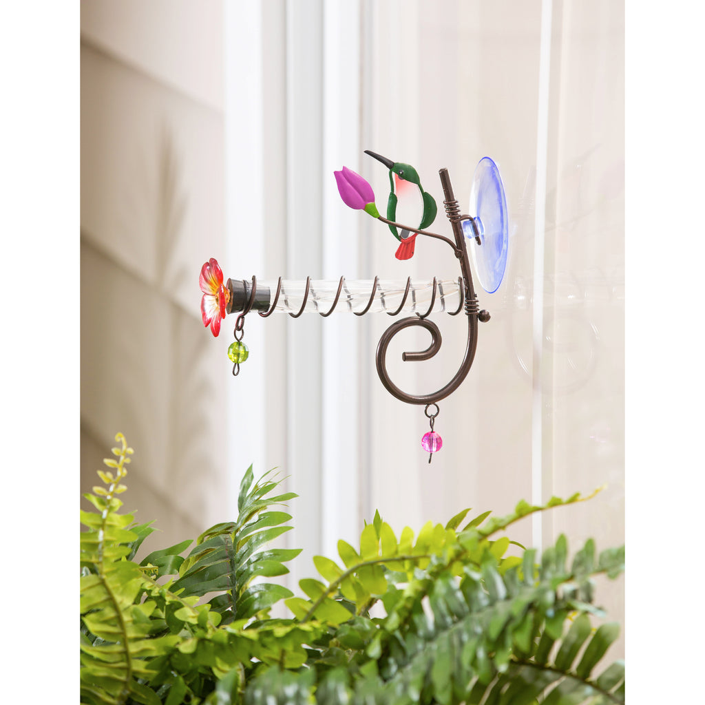 Window Hummingbird Feeder with Bronze Details and Suction Cups, Hummingbird and Tulip,2hf318