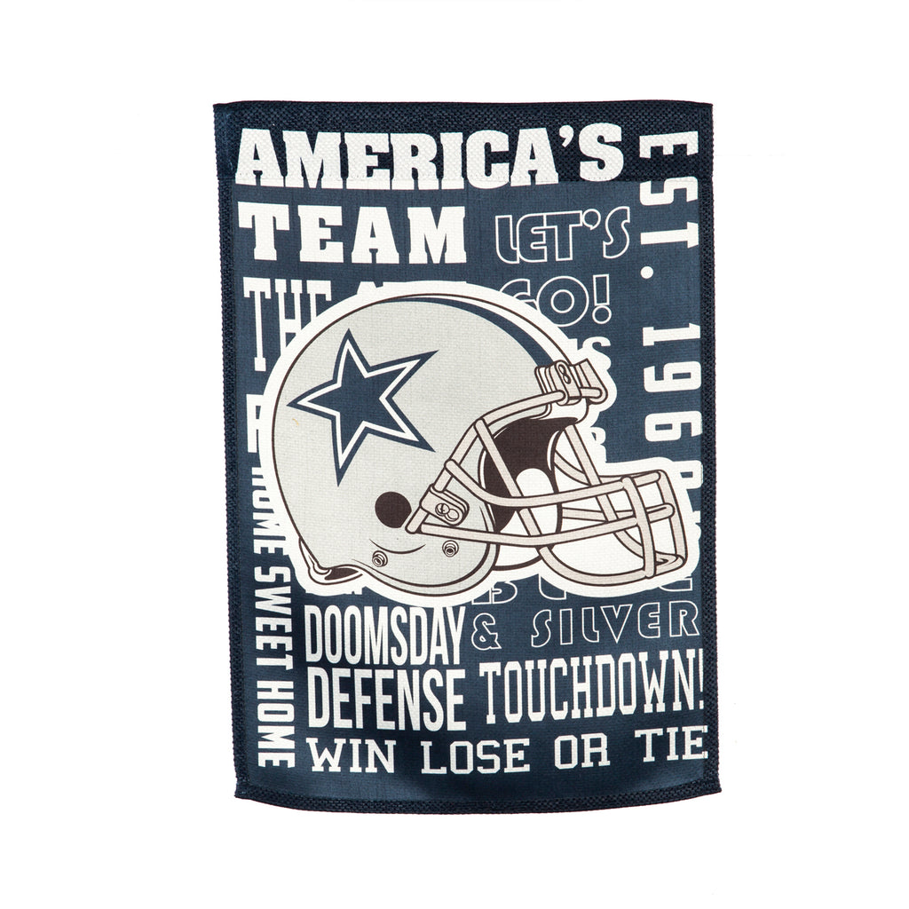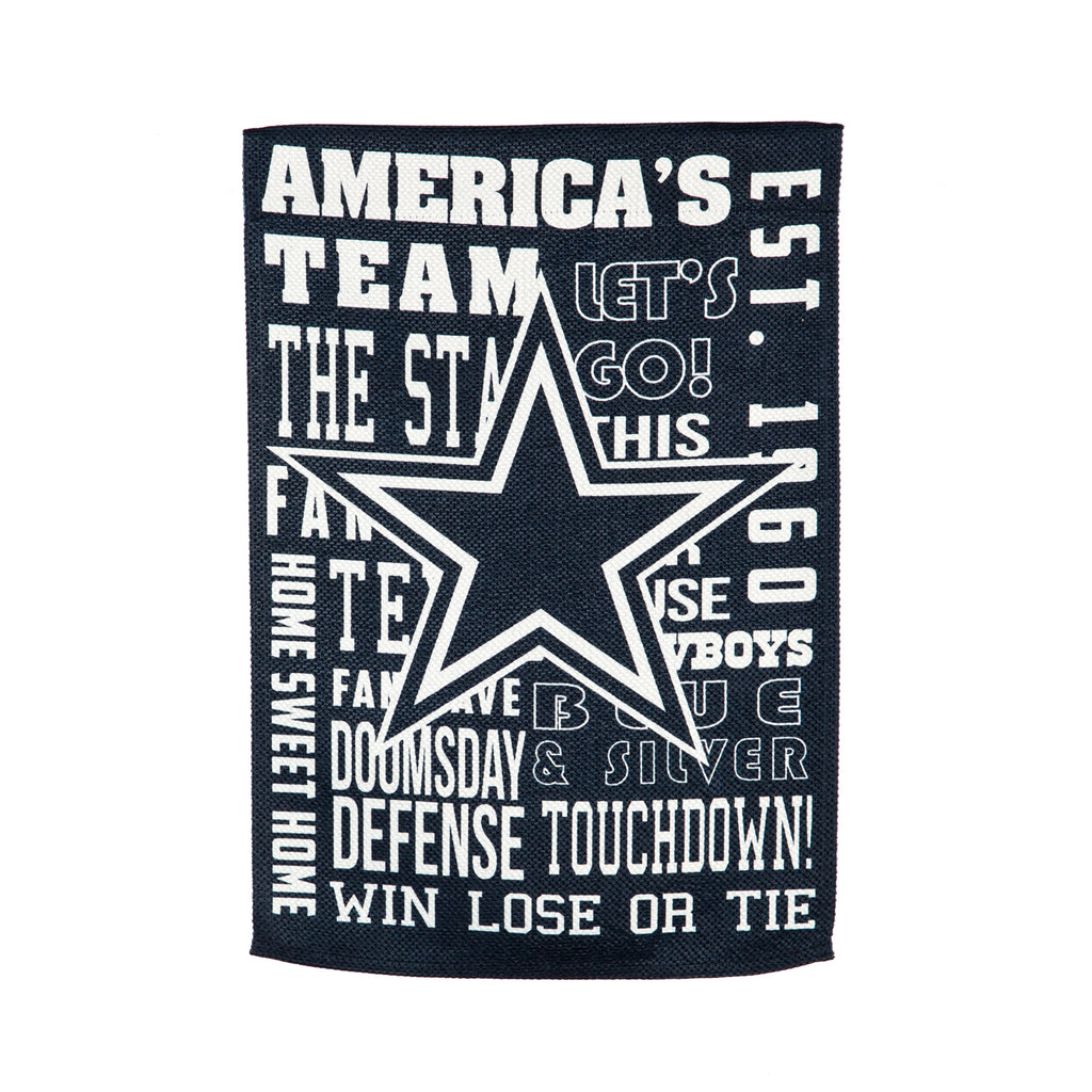 Dallas Cowboys, Fan Rules ES REG. Evergreen Flag celebrates your unique style. Whether you are looking for the finishing touch to make your house an enjoyable home, from seasonal patio, home and garden decor, to innovative interior art, we've got you covered. Our catalog has thousands of house and garden flags, doormats, garden stakes, wind chimes, bird houses and so much more. Whether you are hosting an event or looking for a perfect gift - look no further. Evergreen Flag is the perfect "Greeting Card of Your Home." Offering you unique, value-priced options to add fun, eye-catching personality to their homes has been our focus for decades. We started designing and producing flags over 25 years ago, and we continue to work to deliver innovative and fun designs and techniques to this collection to be enjoyed season after season, year after year. This beautiful addition to your home, garden, patio or yard is crafted from weather resistant, fade resistant premium materials. It is designed to last for many seasons to come.