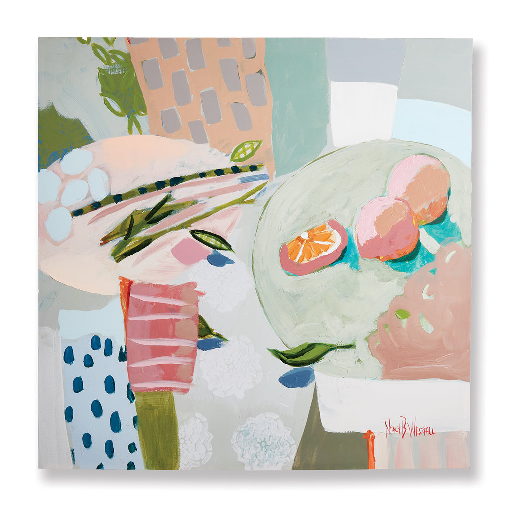 Made with a high-quality printing process and hand-embellished for added texture and color. This charming blush abstract composition by Nancy B. Westfall is simply stunning.