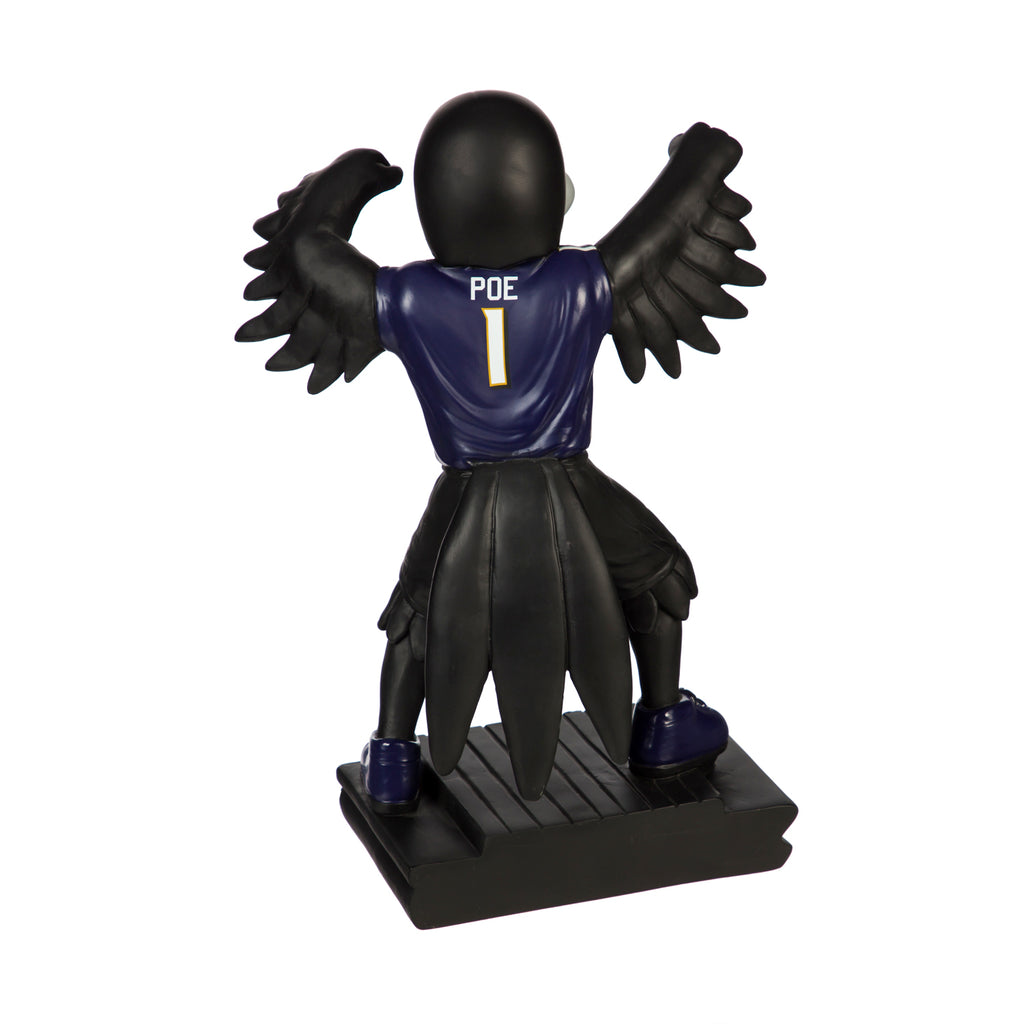 This licensed team Mascot Statue features the Baltimore Ravens mascot and team logo. It is crafted from polyresin and hand painted in team colors. Brown box packaging.